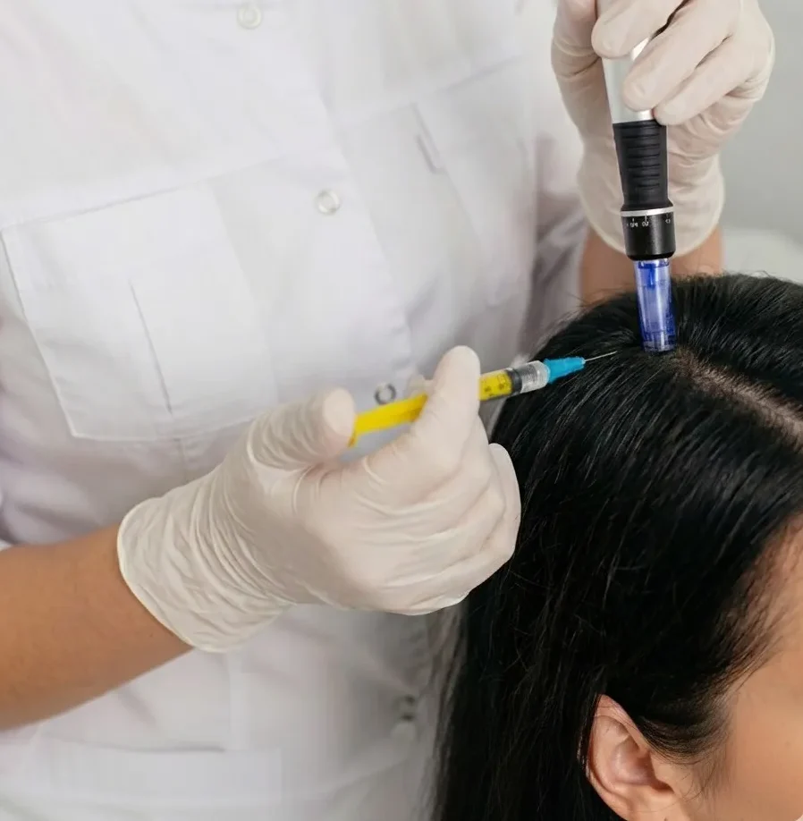 A hair restoration treatment using PRP (Platelet-Rich Plasma), derived from the patient’s own blood, to stimulate hair follicles and promote natural hair growth.