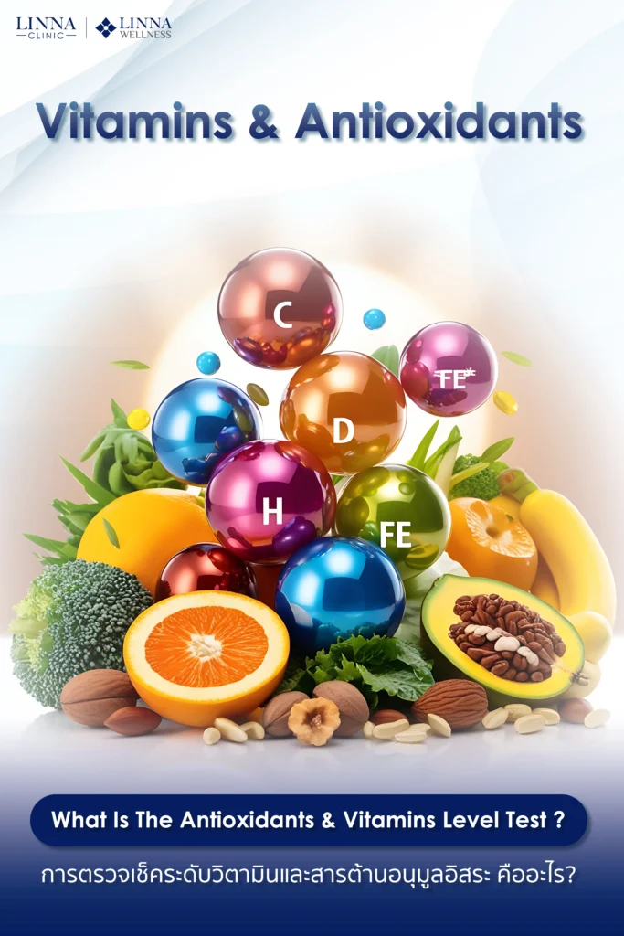 Description: โปรแกรมตรวจระดับวิตามินและสารต้านอนุมูลอิสระที่จำเป็น เพื่อเสริมสร้างภูมิคุ้มกัน ลดการอักเสบ และชะลอความเสื่อมของเซลล์ เหมาะสำหรับผู้ที่ต้องการดูแลสุขภาพและความงามจากภายใน