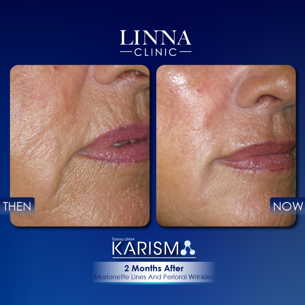 With the synergistic action of these three active ingredients, Karisma Rh Collagen not only fills wrinkles and deep folds immediately similar to conventional fillers but also stimulates natural collagen production for long-term results. The skin becomes firmer, smoother, and more youthful-looking in a natural way. Visible improvements can be seen within 2–4 weeks, and results typically last around 6–12 months, depending on the individual.