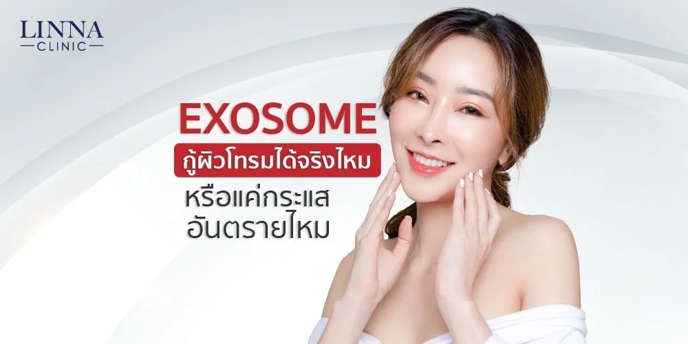 เทรนด์ผิวสวยในปัจจุบันไม่ใช่แค่เพียงการเป็นเจ้าของผิวขาวใส มีออร่า แต่เป็นการมีคุณภาพผิว (Skin Quality) ที่ดูดีจากภายในสู่ภายนอก หากใครที่กำลังมองหาวิธีปรับหน้าโทรมให้กลายเป็นหน้าใส คืนความยืดหยุ่นชุ่มชื้นให้ผิวแข็งแรงได้อย่างล้ำลึกจากภายในต้องไม่พลาด Exosome สกินบูสเตอร์ตัวดังที่สามารถตรงเข้าฟื้นฟูเซลล์ผิวได้อย่างรวดเร็วและมีประสิทธิภาพ Exosome คืออะไร? ดีจริงไหม ทำ Exosome อันตรายหรือเปล่า พร้อมวิธีดูแลตัวเองหลังทำ Exosome ดูคำตอบได้ในบทความนี้จาก LINNA Clinic