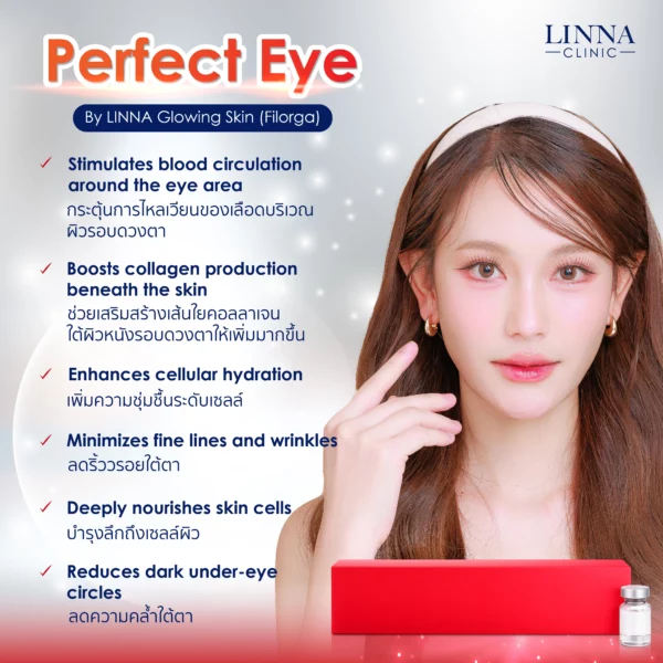 โปรแกรมฟื้นฟูผิวรอบดวงตาด้วย Filorga ช่วยลดเลือนความหมองคล้ำ ริ้วรอย และความอ่อนล้าบริเวณใต้ตา ให้ดวงตาดูสดใส อ่อนเยาว์ และมีชีวิตชีวามากขึ้น